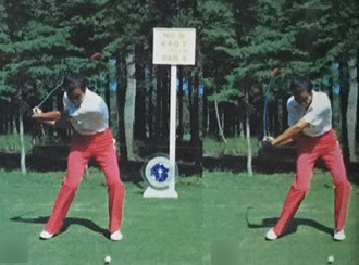 77年のスイングを見ると、やはり軸の傾きがなくなっているのがわかるでしょう。